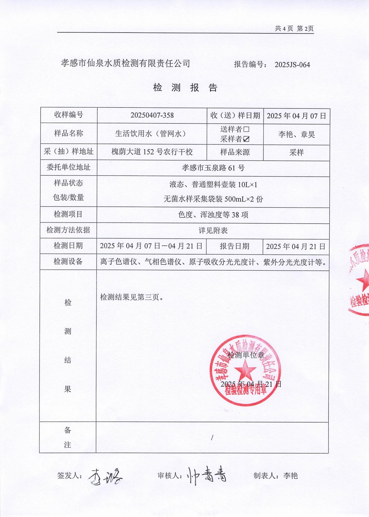 2025年4月檢測報告