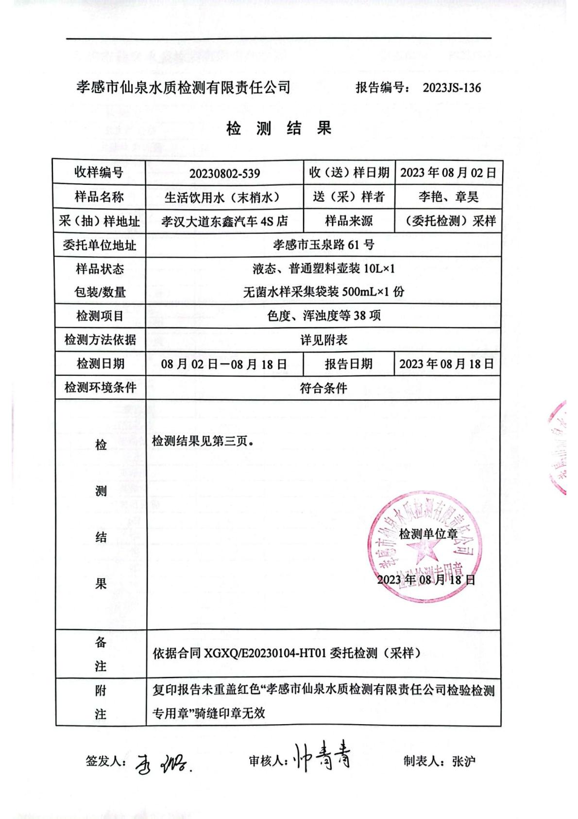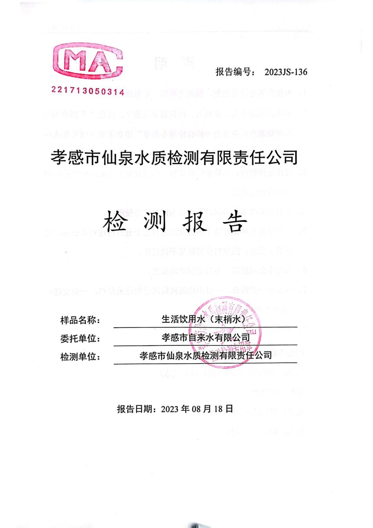 2023年8月檢測報(bào)告