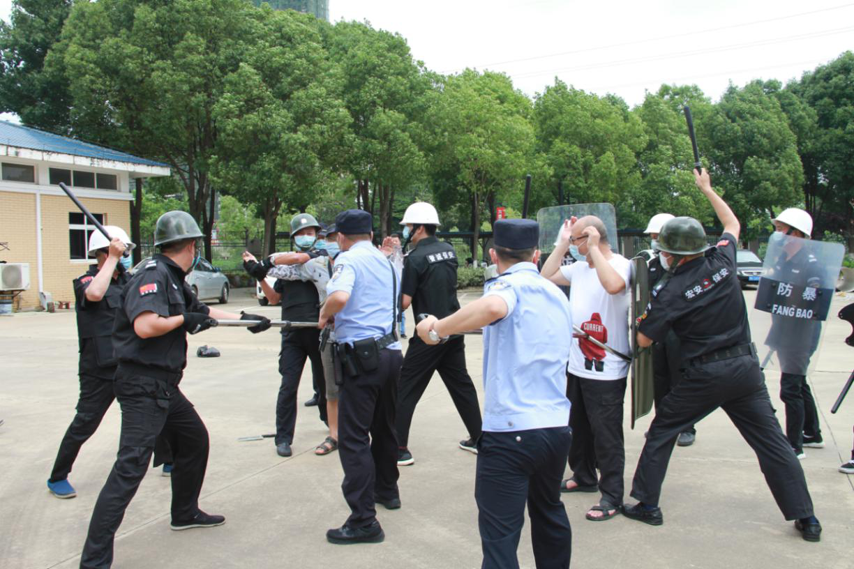 演練開始前,安保負責人宣讀演習分工細節及注意事項,并宣布啟動應急預案,各應急處置小組各自進入狀態。演習開始后,兩位手拿不明液體的閑雜人員假裝檢查人員強行破門而入!當班保安大聲呼救并與該名人員周旋,其中一名保安立即啟動一鍵報警裝置,拿出防爆鋼叉、防爆盾對抗歹徒!應急聯動人員接到報警后第一時間趕赴現場,經過警方談判專家的談判安撫,民警和水廠警衛抓住暴恐分子放松警惕的空隙,使用專業反恐防暴器械將暴恐分子制服,安全解救了人質。此次演習圓滿結束,孝南公安局反恐大隊對此次演習方案及流程給予了肯定,對演習中出現的問題進行一一指導,在場人員受益匪淺。