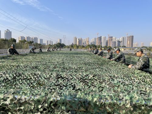 上午9點30分,隨著一聲急促的防空警報聲響起,由我公司21名民兵組成的水廠專業隊隊員在隊長的口令下整頓稍息,迅速前往三水廠重點防護區域進行偽裝防護。只見21名隊員身著統一訓練服,動作整齊劃一,在規定時間內,迅速將偽裝網覆蓋在水廠絮凝池上方,圓滿完成此次偽裝防護工作。隨后,消防車、救護車、搶修車等車輛依次進場,對水廠遭空襲的重要部位進行搶險搶修并對受傷人員進行緊急救助,在多方配合下,此次演練圓滿完成。