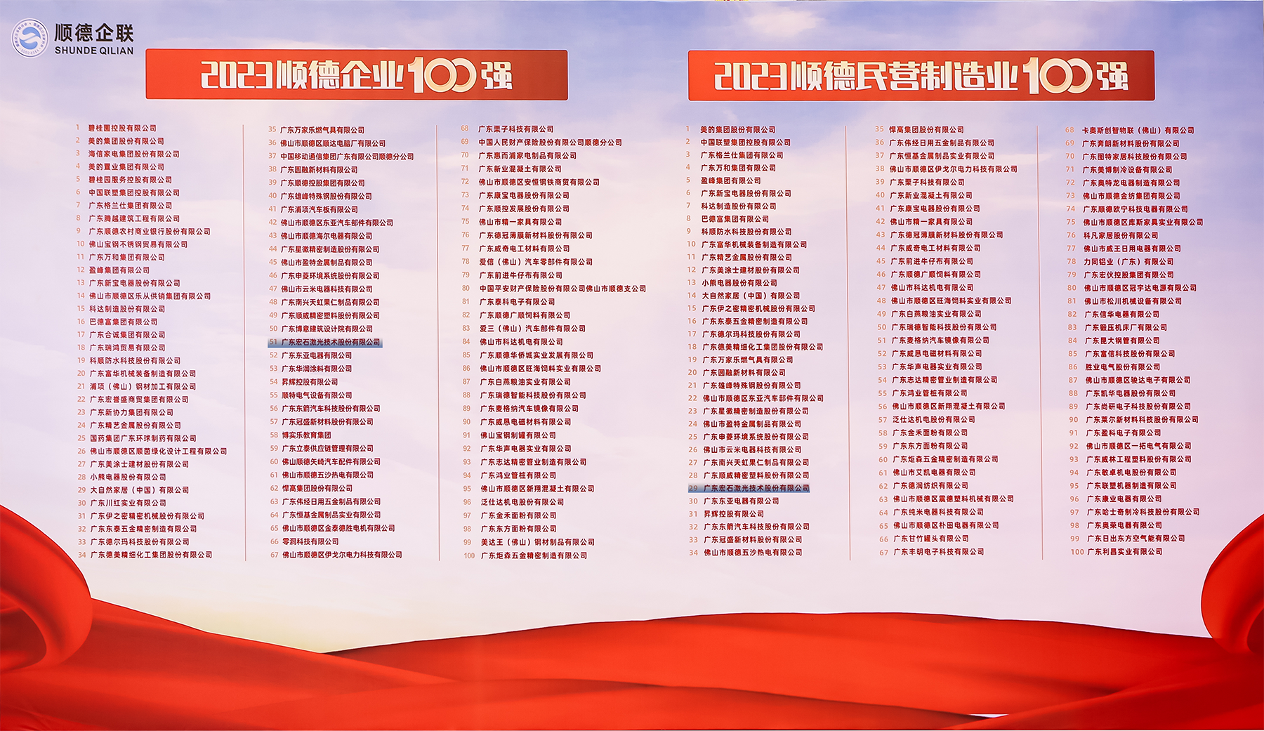 作為高新技術(shù)企業(yè),宏山激光憑借過硬綜合實(shí)力,繼2021、2022年連續(xù)上榜后,再次榮登順德企業(yè)100強(qiáng)榜,位列第51位。榮登2023順德民營制造業(yè)100強(qiáng)榜,位列第29位。這不僅僅是宏山激光持續(xù)穩(wěn)步發(fā)展的有力見證,更是對宏山激光追求高質(zhì)量發(fā)展的一份肯定。